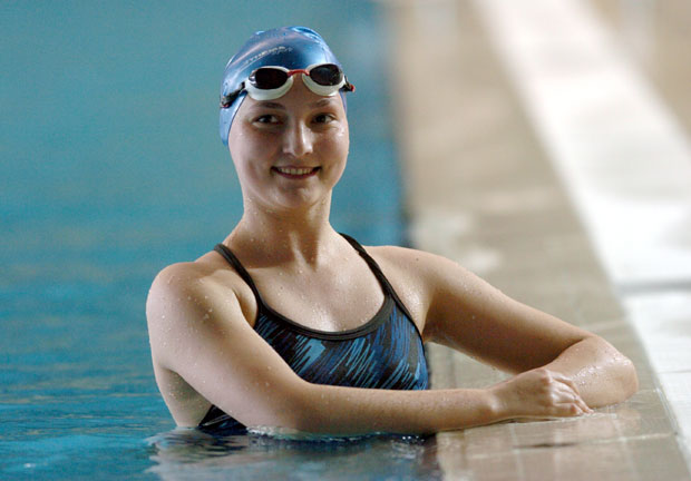 Na bazenu Sportskog centra "11. april", gde svakodnevno trenira plivanje, kao da postaje neko drugi. Na tom prostoru, dok se sprema za skok sa daske, dok zaranja i grabi kroz vodu, ona je potpuni vladar. Ni za mrvu ne vidi se u njenom stavu, snazi i upornosti da se njeno telo razlikuje od tela ostalih plivača sa kojima deli bazen.