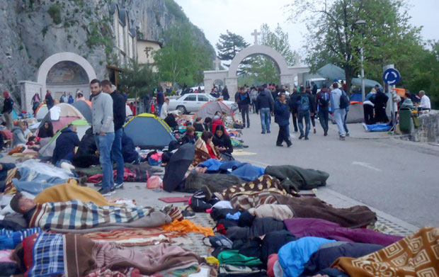 Reka ljudi ispred ostroškog manastira