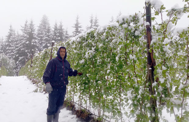 I u selima oko Nove Varoši sneg je u ponedeljak ujutru lomio rodne grane i prekrio malinjake. Mokri i promrzli, sin i otac Jelenko i Ratomir Jadžić, na 1.140 metara nadmorske visine, u selu Vilovi, od svanuća su sa grupom radnika branili malinjak.Pokušavaju da spasu što se spasti može: stresaju grane, a ono veje kao o Savindanu. Minulo je deset sati, a na doručak niko i ne pomišlja. Samo pokoja čašica rakije, da se muka odagna, bar na tren.
