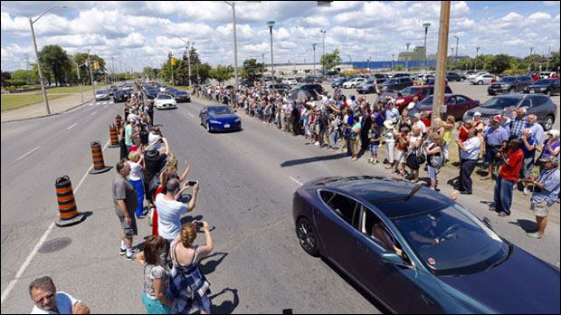 Covek u sredini na pretposlednjoj slici, sa makazama u rukama je bivsi gradonacelnik grada Hamiltona, Bob Bratina, jedan od najzasluznijih sto je gradski odbor doneo ovu odluku... On je Kanadjanin Srpskog porekla koji je mnogo aktivan u nasoj zajednici u Hamiltonu... Hvala Gosp. Bratine...