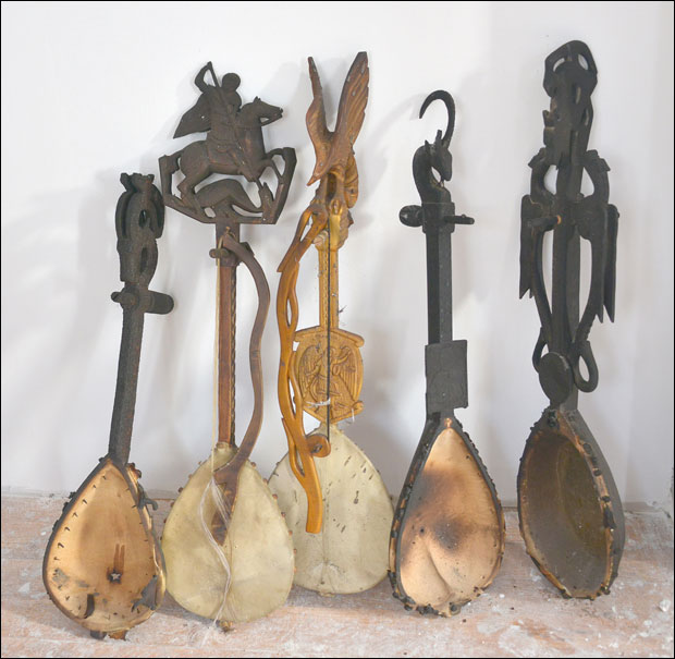 - Evo, ovima je ostalo samo drveno telo i vrat i to su gusle Vanje Bulića, koje mi je doneo na popravku u moju radionicu - sa setom gleda Sandić u položene havarisane instrumente.