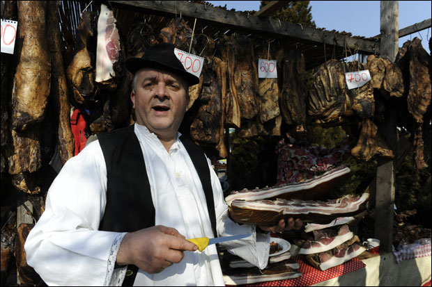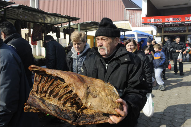 Stigli su uzorci slaninice iz Francuske, Holandije, Slovenije, Rumunije, Makedonije... Na mnogim tezgama prodaju se pršuta i pečenica, kobasice od konjskog mesa i ponovo popularne i cenjene mangulice.