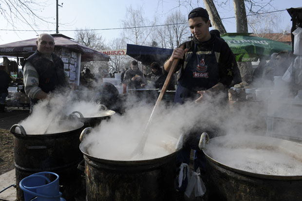 Od prizora ogladne i siti. I sve može da se proba. Tek napunjena domaća kobasica prži se na štandu Kačarevke Slađe Terić. Gužva oko poslužavnika gde se na široko služi još vruća. Dovikuje neko: