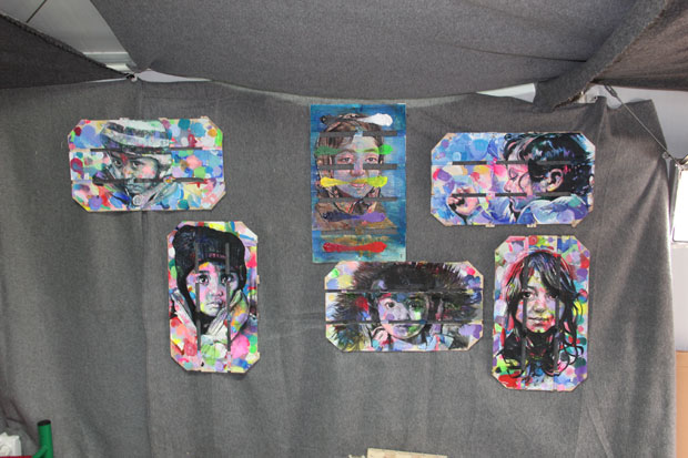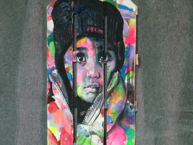 Njegova inspiracija su ljudi, pre svega deca. Kaže da je u gajbicama koje koristi za slikanje bilo voća i druge hrane za decu, pa je simbolično želeo da na njima oslika mališane koje sreće u kampu.