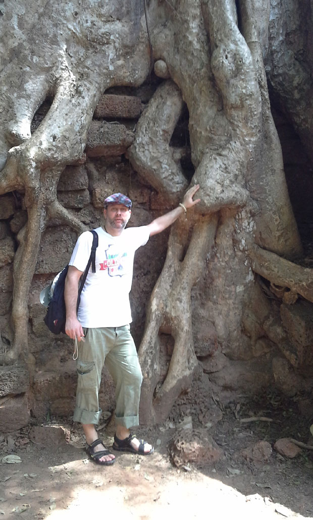 Naš reporter ispred stabla koje je obgrlilo hram u Angkoru