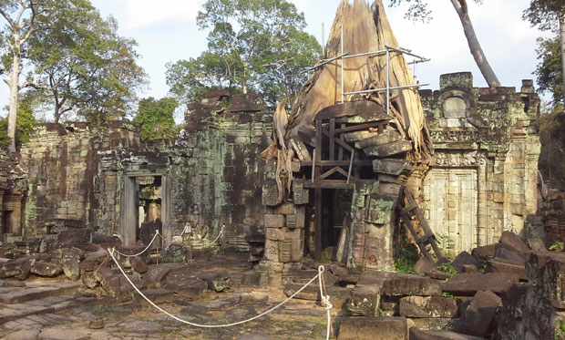 ONO što se u Angkoru može videti i osetiti nije moguće dočarati ni filmom, ni fotografijom, a kamoli rečima. Drveće visoko i nekoliko desetina metara, koje kao da raste iz zidova, obgrlilo je, gotovo progutalo temelje, zidove i krovove manjih svetilišta. Veličina i masivnost drugih, kao što su Angkor Vat, Bajon, Baphuon, kod posmatrača izazivaju nevericu.