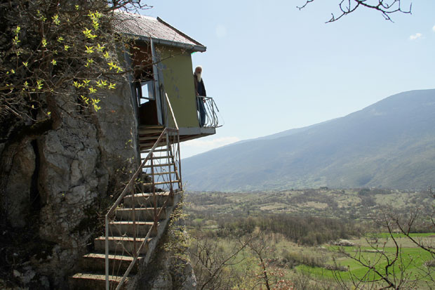 NEDALEKO od Bele Palanke, u ataru sela Oreovac, Miroslav Pavlović, samouki građevinar i majstor, napravio je kućicu, jedinstvenu po mnogo čemu. Smeštena na steni, visokoj 12 metara, na vrhu Popovog brda, lebdeći u vazduhu, poput čardaka ni na nebu ni na zemlji, ova kućica od desetak kvadrata, više od 35 godina prkosi vremenu, fizici, vetru.