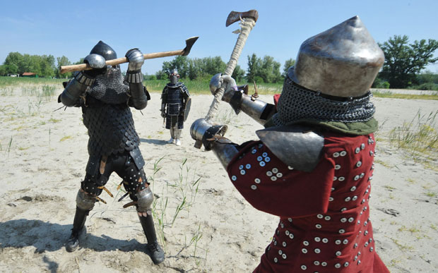 Zveckanje oružja momaka odevenih u autentične kostime sa ručno izrađenim oklopima prerasta u bitku, u kojoj sve odzvanja od udaraca buzdovana u štit, sekire o kacigu...