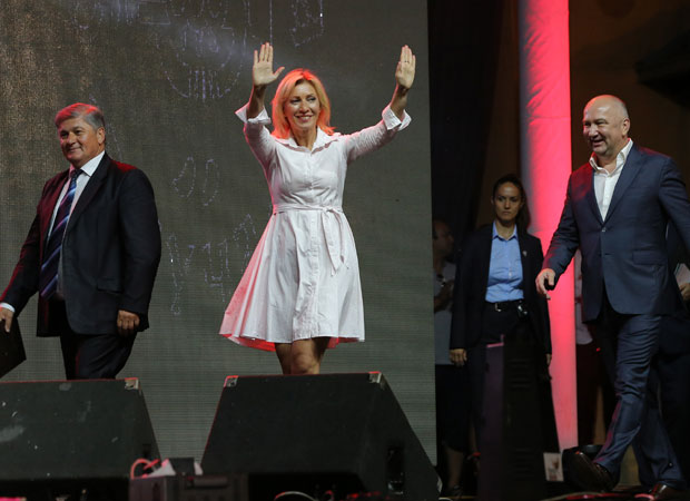 TRUBA svira “Bože pravde”, pa “Kaljinku”... Stadion krcat saborašima. Vrište, urlaju, iz mase se čuje “Rusija, Srbija”. Na pozornicu kraj Bjelice izlazi Marija Zaharova, portparolka Ministarstva spoljnih poslova Rusije u pratnji ministra Nenada Popovića i predsednika Saborskog odbora Slobodana Jolovića, koji joj je pred hiljadama saboraša uručio Povelju počasnog gosta Sabora.
