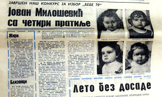 TAKMIČENjE, verovatno jedno od najlepših koje su "Novosti" za svoj dugi vek organizovale, bilo je iz 1970. godine - Izbor za najlepšu bebu! Posle višemesečne potrage i stroge selekcije žirija, dečjih lekara, koji su vagali između 1.255 mališana iz svih beogradskih opština, prijavljenih na konkurs, izabran je pobednik. U leto pre 48 godina, na trećoj strani beogradskog izdanja našeg lista, objavljena je slika najlepeše bebe, crnookog, šesnaestomesečnog Jovana Miloševića.