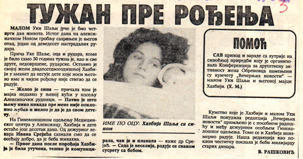 Pre 29 godina, posle strašne tragedije u aleksinačkom rudniku, rodio se Uka Šalja. Dobio je ime po ocu, a on i njegova majka ne zaboravljaju dobročinstvo koje smo im pružali u najtežim trenucima