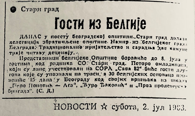 Bilo je, onda, sasvim prirodno što su se belgijski Beograd i jedna od beogradskih opština, Stari grad, pobratimili. Potpise su, na inicijativu Valonaca, 11. maja 1973. stavili predsednici opština Milka Šćepanović i Andre Gise, ali se toga u srpskoj prestonici verovatno malo ko seća. U belgijskom Beogradu su tom prilikom svečanosti trajale punih deset dana!