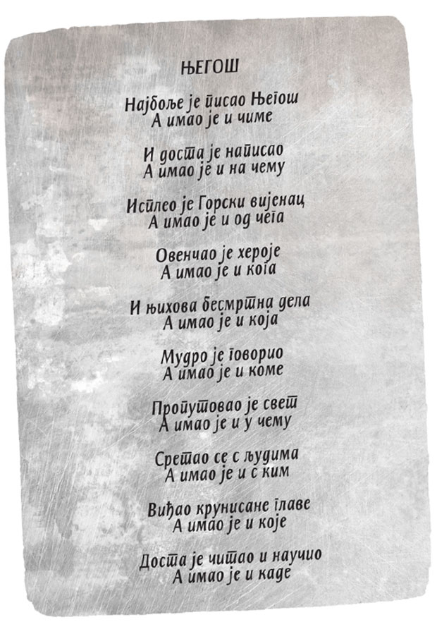 U kamen pored Tesle upisani i Njegoš, Danojlić, Desanka, pa Ljuba Popović, Petar Pajić