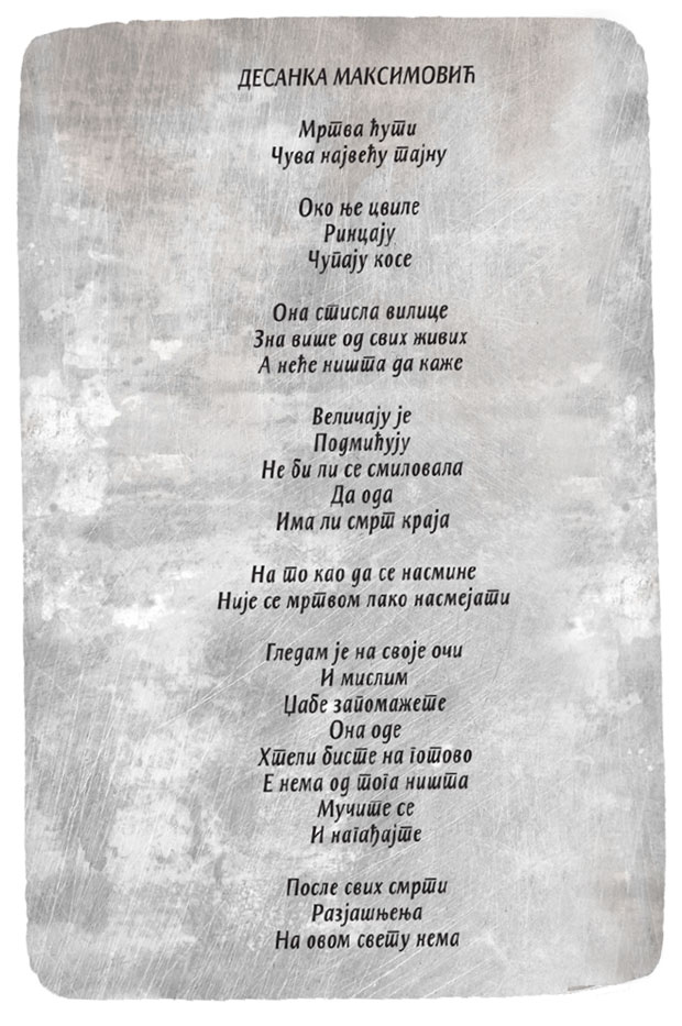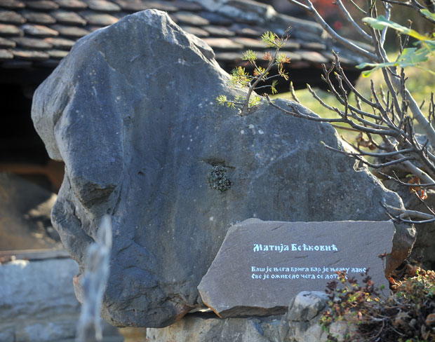Na uzvišici su gromade, kao okamenjeni velikani kojima je Bećković posvetio portrete u stihu.
