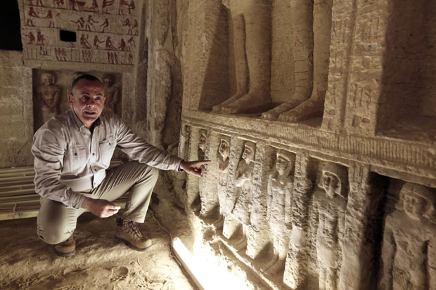 Prema njegovim rečima, u "izuzetno dobro očuvanoj" grobnici se nalaze brojne statue raznih veličina i boja.
