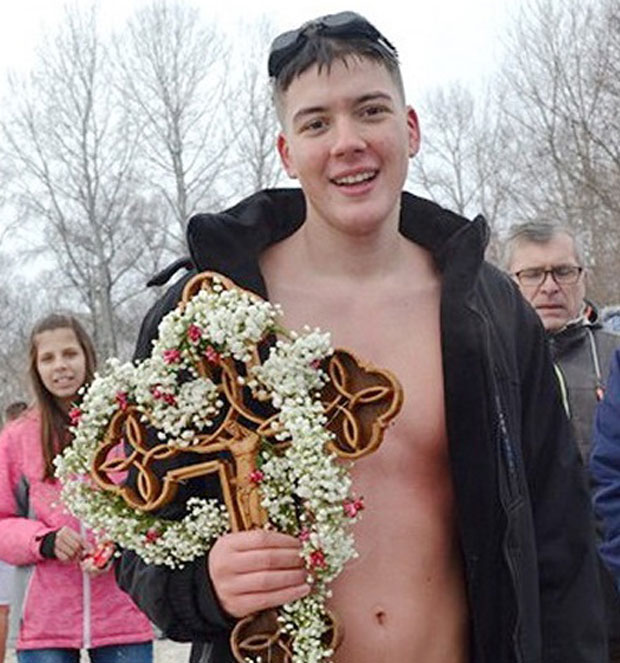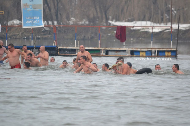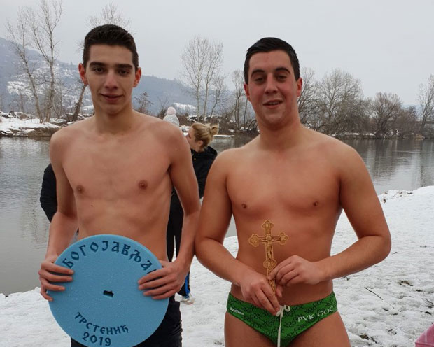 SREDNjOŠKOLOLAC Dimitrije Milojević(18)pobednik je u plivanju za Bogojavljenski krst na Zapadnoj Moravi u Trsteniku.Nadmetanje za časni krst je u ovoj opštini obnovljeno pre pet godina, prvi put posle 1949.godine.Na poziv Crkvene opštine trsteničke i pod pokroviteljstvom lokalne samouprave sada se odazvalo 25 najsmelijih plivača.Liturgija i osveštenje krsta odigrali su se na Gradskoj plaži posle čega su plivači uskočili u reku.U Rasinskom okrugu za krst se pliva na istoj reci, ali kod Bele Vode,u selu Šavrane kod Kruševca na Rasini,kao i u selu Varvarin kod Varvarina na Velikoj Moravi.