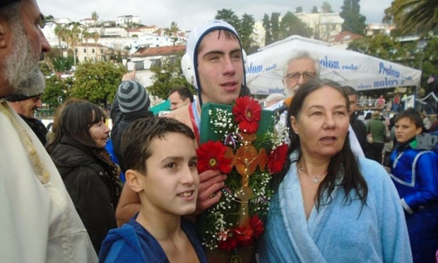 On je do krsta doplivao prvi među 40 odvažnoh mladića koji su se hrabro bacili u brzake lIma, pred nekoliko hiljada Beranaca, koji su tradicionalnu svečanost pratili sa obala i mosta na Limu.