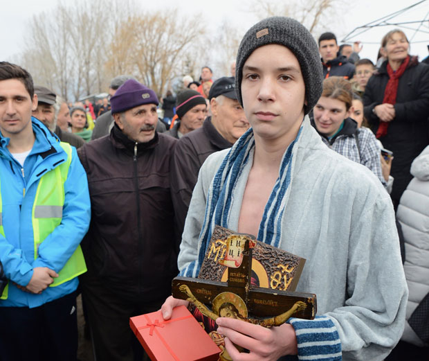 Desetogodišnji Pavle Đurđević iz Svilajnca prvi je doplivao do Bogojavljenskog krsta na tradicionalnom plivanju održanom na Bibinim rupama kod Velike Morave.
