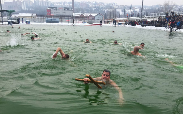 Plivanje za časni krst u Zapadnoj Moravi / Foto G. Šljivić