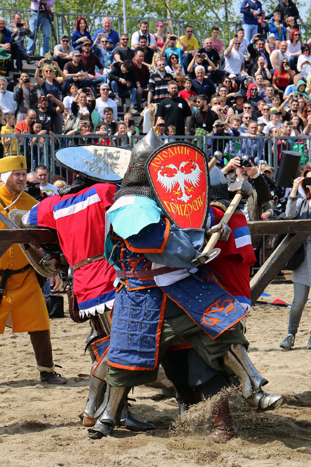 - Takmičari iz 40 zemalja ovde će se boriti onako kako su se nekada borili vitezovi, jer naša misija je da ponovo uzdignemo srednjovekovne uzore časti. S moćnim oružjem, u teškim oklopima, povešće vas u jedinstven svet tradicije borenja. To je pravo putovanje kroz vreme, u doba srednjovekovne slave viteštva - kazao je Eme, napomenuvši da su počastvovani time što se "Bitka nacija" odvija u Smederevu i Srbiji - zemlji bogate istorije.