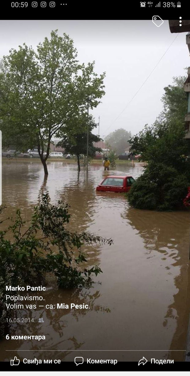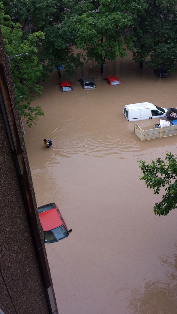 U podne veliki deo vrata mog stana nije se video. Moje naselje Stočnjak već bilo jedno veliko jezero. Čuju se helikopteri, uspaničeni ljudi. Auta koja su potopljena već im se pale alarmi… A u glavi: “Samo da budemo živi!”
