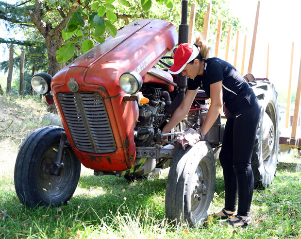 - Mama nije imala primanja ni penziju i znala sam da moram da se pokrenem, ako mislim da opstanemo - seća se Marija. - Otac mi je kao maloj mnogo toga u poljoprivredi već pokazao, jer sam bila neobično zainteresovana za muške poslove, mašine, naročito traktore i poljoprivrednu mehanizaciju. Bilo je u početku, kada smo ostale same, mnogo teško. Plakala sam, jer nisam mogla da dohvatim kočnicu i kvačilo, pa sam morala da vozim stojeći. Sećam se muka jer nisam umela da naštelujem plugove... S vremenom sam učila i preuzimala sve poslove. Sad orem, tanjiram, sejem, radim s utovarnim presama, baliram...