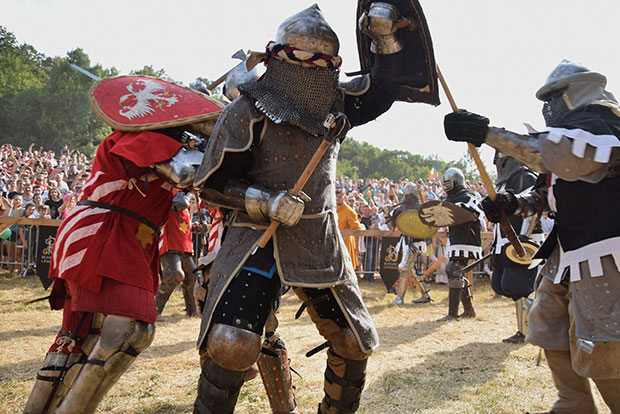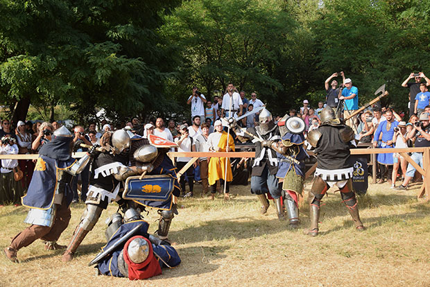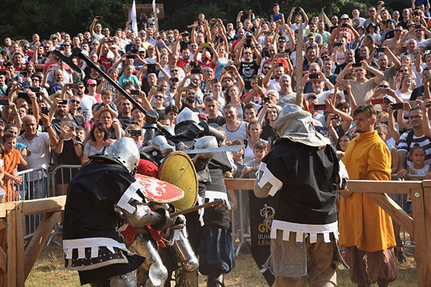- Oprema nam je teška 35 kilograma, pa je boriti se na temperaturi od 33 Celzijusa veoma nezgodno. Pogotovu što naše telo ispod oklopa razvija temperatura od oko 80 stepeni! Najteži je šlem, jer se izrađuje od najdebljeg čelika, i težak je oko 7 kilograma. Četvrtina opreme na glavi, pa je najteže disati. Grudni oklop steže, pa kada budemo zadihani, ne možemo lepo da udahnemo vazduh – rekao je za „Novosti“ Nemanja Apatović, član Udruženja „Beli vukovi“ i dodao da se vitezovi za borbe pripremaju i treniraju najmanje pola godine da bi izdržali četiri borbe po dve runde, odnosno 20 minuta, ali i oko dva i po sata, koliko su u oklopu dok se sve borbe ne završe.