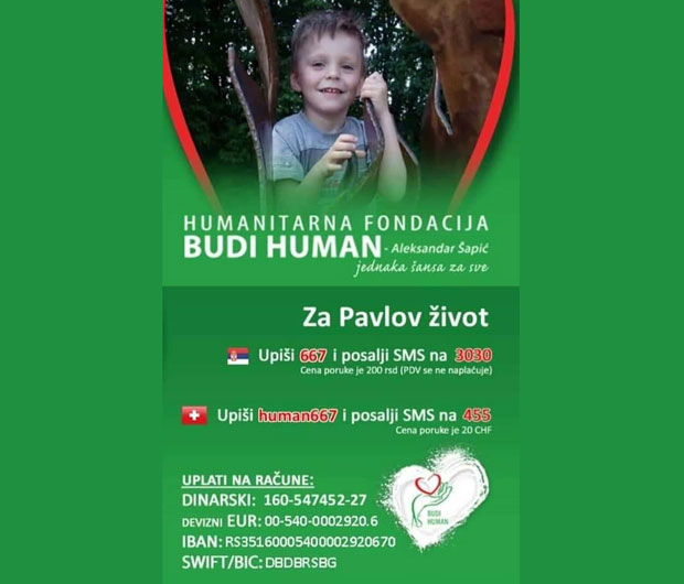 Trenutno se nalazi u Turskoj na zračenju, a prema dijagnozi lekara, potrebne će biti dodatne terapije. Već je utrošeno oko 40 hiljada evra za lečenje malog Pavla, ali to je sada nedovoljno, jer njega očekuju dalji bolnički tretmani.