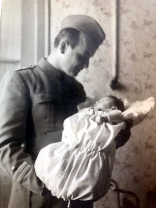 Bio je jedna od retkih preživelih beba u zbegu. Pokazuje nam sliku, u očevom naručju, kad ga je video prvi put.