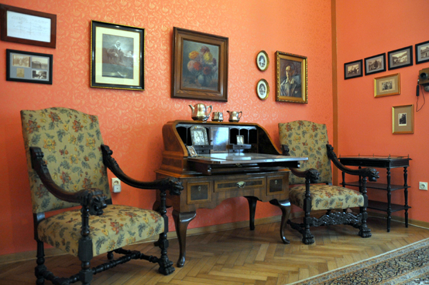 Na molovanim zidovima vise stare fotografije, između ostalih i srpske delegacije u Rusiji, u Carskom Selu, 1910. godine. Beše to na audijenciji kod cara Nikolaja Drugog, a na slici se, među gomilom ministara i oficira, prepoznaju kralj Petar, Nikola Pašić i Šturm. Na stolu prekoputa je beležnica sa telegramima koje je kralj diktirao Jurišiću. U drugoj sobi, pored biblioteke i voštiša (sto sa mermernom pločom, na koji se stavljao lavor za umivanje), smešteno je kanabe, a na njemu jastuk koji je Jelena, žena Pavla Jurišića Šturma, lično napravila od svoje balske haljine.