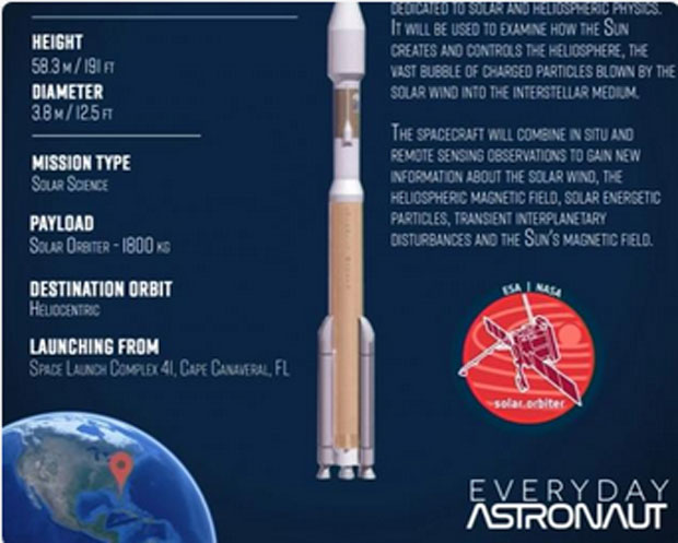 Raketa koja nosi Solarni orbiter pripada tipu 5 Atlas i zadatak joj je da "Orbiter" stavi u orbitu oko Sunca.