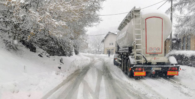 Zaboga, mora li taj sneg da padne na puteve ili pravo u kamione. Čemu panika. Ovo je samo sneg u tragovima.