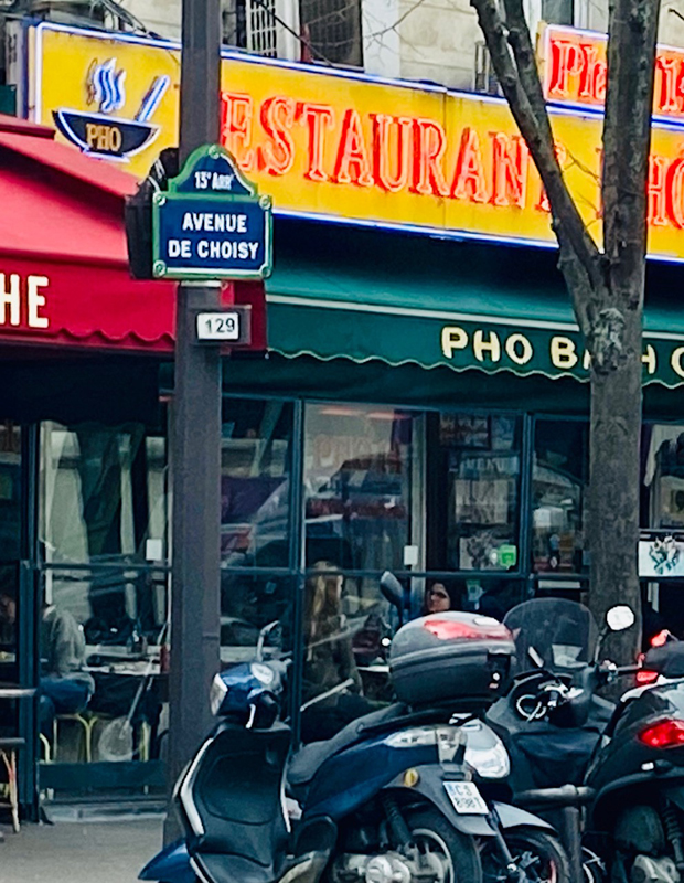 U restoranima u aveniji Šoazi, uglavnom kosooki. Ima i lokalnih likova evropskog tipa, koji, čini se, više dolaze da bi izrazili solidarnost, nego zato što im je, zaista, u ovom trenutku, stalo do ukusne supe s bambusom i škampima. Bilo je i onih koji su ozbiljno pitali ima li opasnosti da se zaraze od hrane, pre nego što su seli za sto.