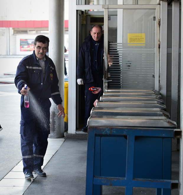 Na ulaznom peronu zaposleni su skoro sve vreme dezinfikovali metalne površine.