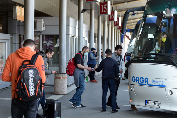 Tačno u podne, juče je kompletno obustavljen autobuski i železnički međugradski prevoz u Srbiji. Da bi se zaustavilo širenje virusa korona građani će ubuduće moći samo automobilima da putuju iz jednog u drugo mesto. Nekoliko sati pre polaska poslednjeg autobusa, na Beogradskoj autobuskoj stanici (BAS), ipak, nije bilo velike gužve.