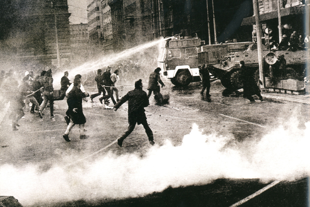 Policija rasteruje demonstrante 9. marta 1991. godine Foto SPO "Spomenar"