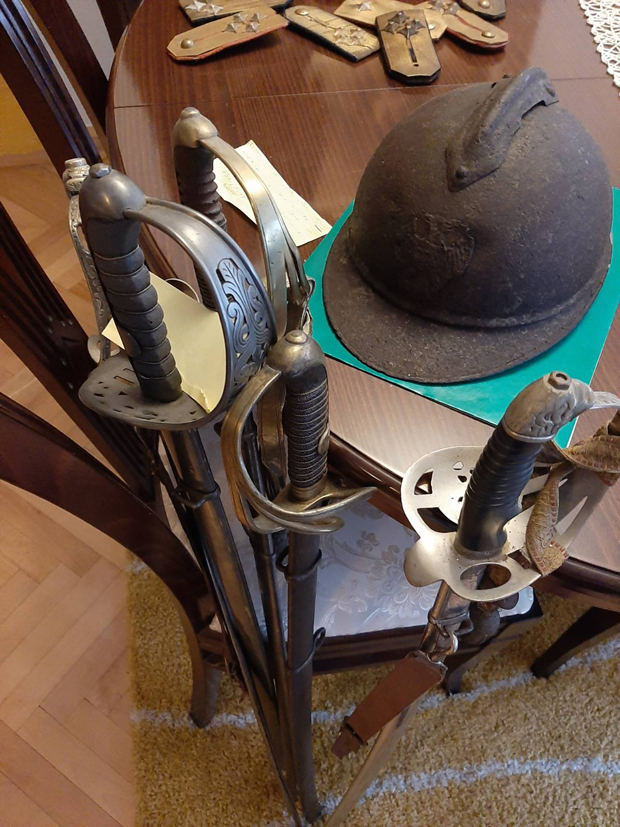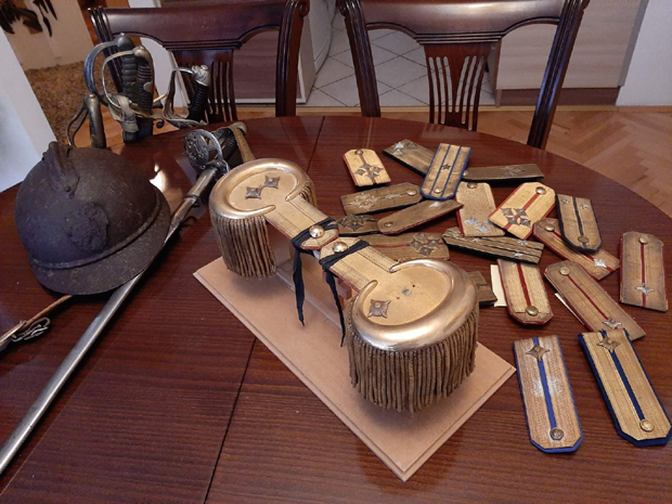 - Tu su kokarde za kape Kraljevine Jugoslavije iz vremena kraljeva Petra Prvog i Aleksandra Drugog Karađorđevića, razne epolete, petokrake KNOJ, slavnih generala, Albanska spomenica, odličja iz balkanskih ratova, Petrov krst i mnogo drugih detalja - objašnjava nam Končalović. - Tu je i "šlem adrijan" iz perioda Kraljevine Srbije, autentičan, bez restauracije, iskopan iz zemlje. Čuvam i sablju Kraljevine Jugoslavije sa gravurom, kao i sablju iz 1863. koju su koristili pripadnici konjice i artiljerije. Ove dve sablje su mi posebno drage.