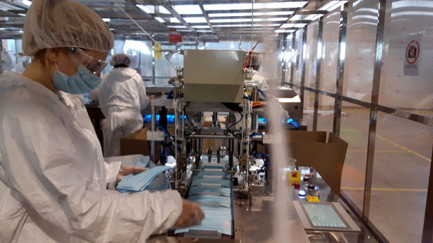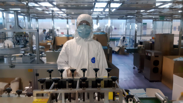 U sterilizovanoj prostoriji, gde se posao odvija u tri smene sa najvećim stepenom zaštite, posao obavlja 60 radnika, koji čine jedan mešani tim i to kinesko-srpski.