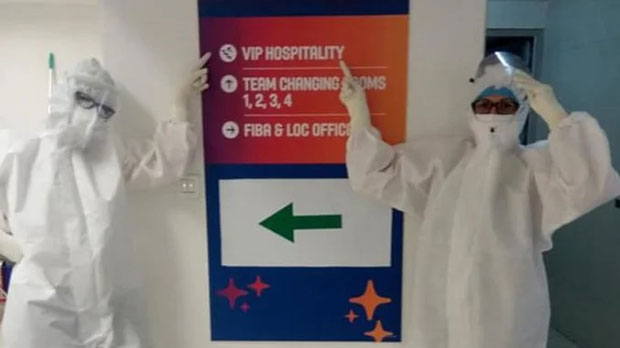 Na društvenim mrežama su se pojavile fotografije medicinskog osoblja pred sam izlazak iz hale koja je služila za lečenje pacijenata sa blažom kliničkom slikom