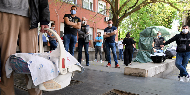 U kliniku u Višegradskoj u ponedeljak su, uglavnom, ulazile trudnice, dok je ispred ostajao veliki broj očeva sa nosiljkama u rukama, koji su čekali da svoje bebe odnesu kući. Svi strpljivi, sa maskama na licu. U kliniku su ulazili jedan po jedan.