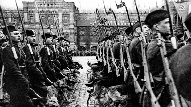 Sovjetski tenkovi i vojnici na paradi u Moskvi 1945.
