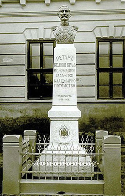 - Spomenik u vidu monumentalnog poprsja od bronze delo je beogradskog vajara Frana Menegelo Dinčića i postavljen je ispred Gradske kuće na trgu - navodi se u Monografiji Bačke Topole 1750-1945. - Na spomeniku je pisalo “Petar Prvi Veliki kralj oslobodilac 1844--1921. Blagodarno potomstvo. Podignuto 3. 15. 1926”.