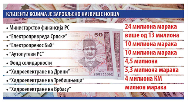 U Banci Srpske ostao je zarobljen ukupni depozit od 150 miliona maraka, od čega je osigurano oko 55 miliona maraka. Ovih osiguranih 55 miliona maraka biće isplaćeno, i to će uraditi Agencija za osiguranje depozita BiH, dok će se ostali novac namirivati od prodaje imovine. Od ukupnih depozita Bobar banke od 225 miliona maraka, na sigurnu naplatu mogli su da računaju samo oni koji su imali do 50.000 maraka, što je ukupno iznosilo 86 miliona KM. Što se tiče ostalih depiozita, od 140 miliona biće isplaćeno 56 odsto tog iznosa, a to znači da će propasti 60 miliona KM depozita pravnih i fizičkih lica.