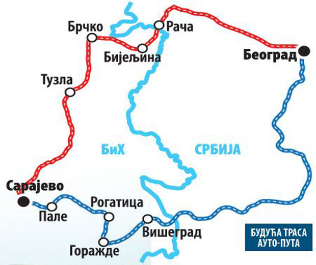 @Meda - Srbija je zainteresovana za auto put Požega-Višegrad-Pale-Istočno Sarajevo, i na severu za autoput Beograd-Rača-Bijeljina-Brčko-Banjaluka. A Federacija hoće da se Sarajevo poveže sa Istočnim Sarajevom i Brčkom i to je O.K.