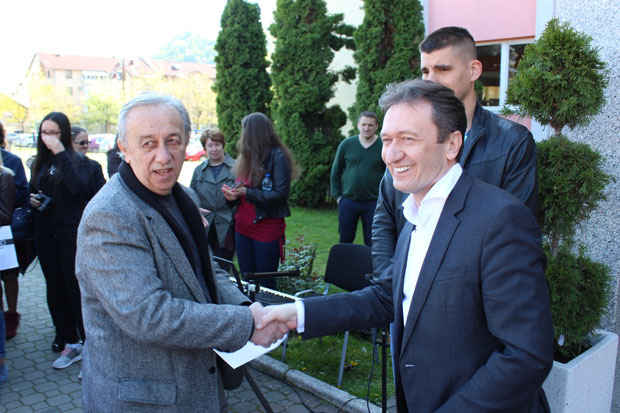 Ispred zgrade lokalne vlasti dočekao ih je načelnik Ugljevika Vasilije Perić koji ih je po narodnom običaju darovao sa 500 KM(30.000 dinara).