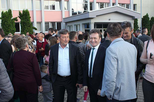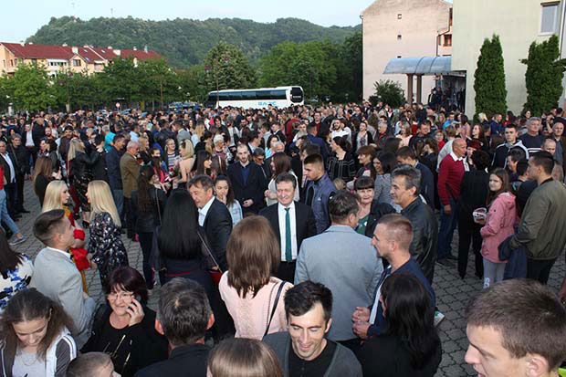 Na gradskom trgu, ispred zgrade opštine, maturante je dočekao načelnik Ugljevika Vasilije Perić sa predsednikom Skupštine opštine ove podmajevičke opštine Đokom Simićem.