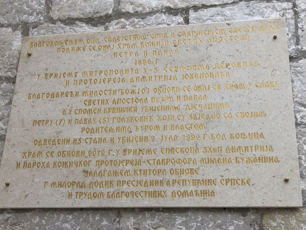 Episkop Dimitrije je poručio nakon osveštanja hrama da je danas dobro pobedilo zlo, i da se Bog otkriva onima koji imaju čisto srce. Braća Petar i Pavle Golubović imali su tek sedam i pet godina, kada ih je u noći između 1. i 2. jula 1992. u Konjicu, zajedno sa roditeljima, uglednim Srbima iz Konjica, Đurom i Vlastom, iz stana izvelo pet pripadnika Interventnog voda PS Konjic, predvođenih Miralemom Macićem, odvezli nekoliko kilometara od stana i pod okriljem noći streljali.