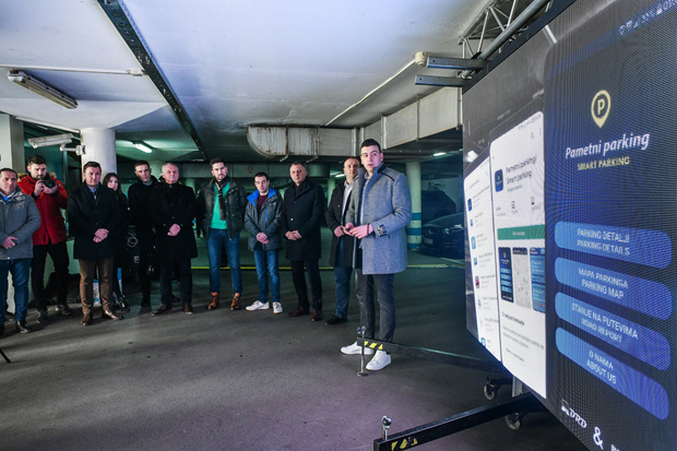 - Danas prisustvujemo promociji nečeg naprednijeg s ciljem da se optimizuje korištenje parkinga u gradu tako da građani provode manje vremena u saobraćaju tražeći slobodna parking-mesta i da imaju informaciju na licu mesta putem displeja i na veb i mobilnoj aplikaciji. Cilj i namera je da to proširimo i pokrijemo šire područje grada, da građani prave manje gužve i troše manje vremena u saobraćaju – naglasio je Radojičić.