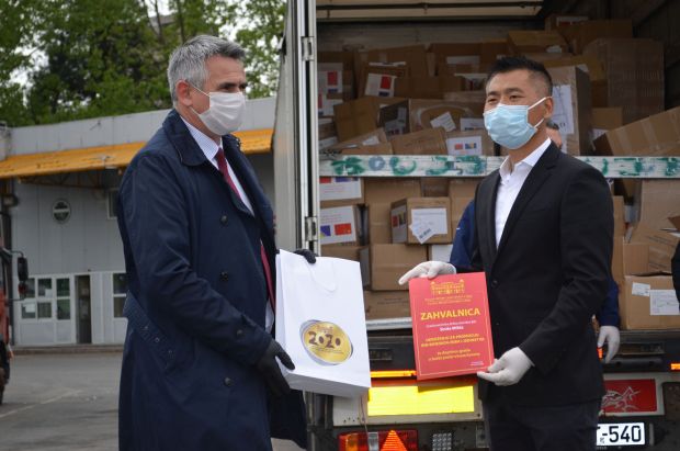 Gradonačelnik Milić iskoristio je današnje preuzimanje pošiljke da He Hebinu, predstavniku Udruženja za promociju bosanskohercegovačko-kineskog mira i jedinstva za doprinos gradu u borbi protiv virusa korona uruči zahvalnicu..