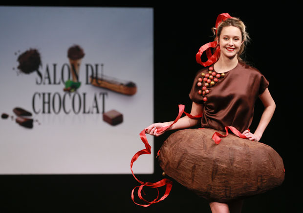 Modna revija koja je rezultat saradnje dizajnera, poslastičara i proizvođača čokolade iz 15 zemalja otvorila je trodnevni sajam "Salon du Chocolat" u glavnom gradu Belgije, prenose agencije.